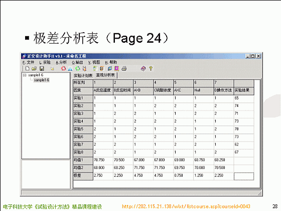 这是一个带交互作用的正交试验,我们可以利用正交设计助手对其制定试验方案,并对实验结果进行极差分析。