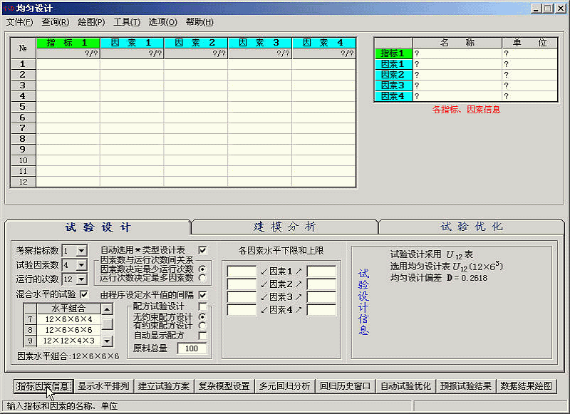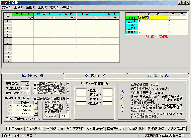 均匀设计2.10版启动后界面如下: