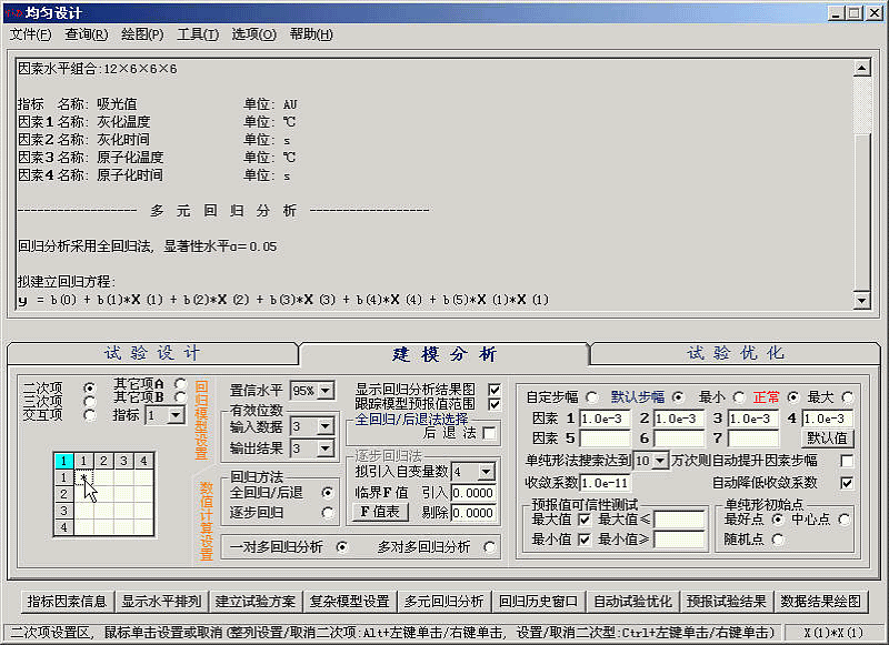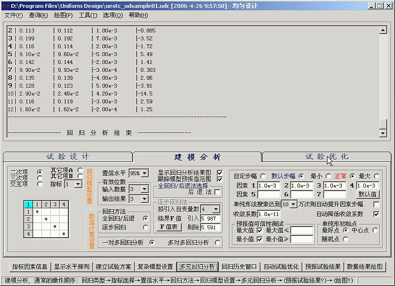 注: 本例子采用的混合水平的均匀设计表的水平排列方式与方开泰先生所著《均匀设计与均匀设计表》, 科学出版社, 1994 中给出的混合水平的均匀设计表U12(12X63)的水平排列方式不同, 特此说明。